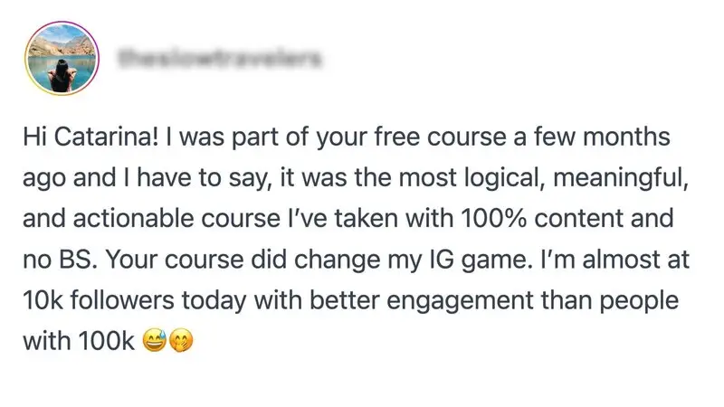 Almost 10K followers and high engagement from my *free* no-BS class