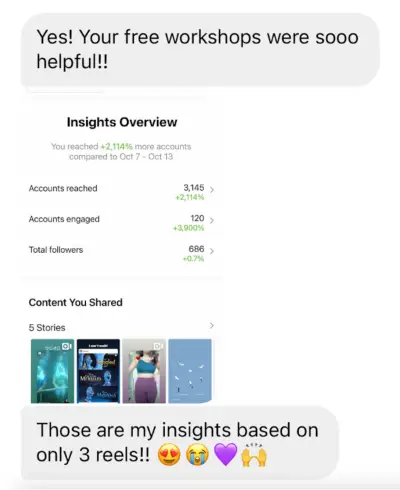 Plus, you’ll be able to steal the Reels strategy that consistently skyrockets my students’s views into the millions.